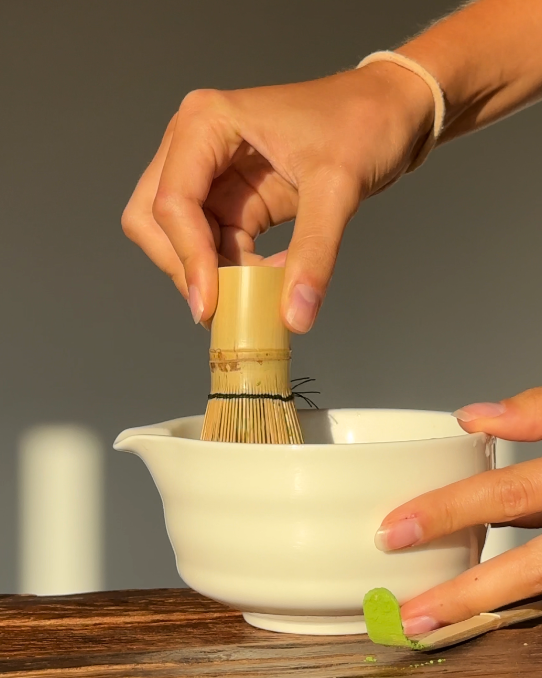 En tradisjonell bambusvisp, eller chasen, håndlaget av ett solid stykke høykvalitets bambus. Den japanske Zhen-stilen med 100 tenner lager silkemyk, skummende matcha med letthet - akkurat som i tradisjonelle japanske te-seremonier. Å bruke en visp anbefales sterkt for å blande matcha riktig og fremheve dens fulle smak og tekstur.
